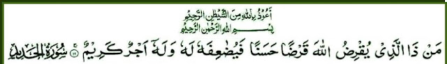 Tafseer of Surah Al-Hadid Ayat 11. Who is he that will Loan to Allah a beautiful loan? for (Allah) will increase it manifold to his credit, and he will have (besides) a liberal Reward. Cf. 2:245. Who is he that will loan to Allah a beautiful loan, which Allah will double unto his credit and multiply many times? It is Allah that gives (you) Want or plenty, and to Him shall be your return. Spending in the cause of Allah is called metaphorically "a beautiful loan". It is excellent in many ways: (1) it shows a beautiful spirit of self-denial; (2) in other loans there may be a doubt as to the safety of your capital or any return thereon; here you give to the Lord of All, in Whose hands are the keys of want or plenty; giving, you may have manifold blessings, and withholding, you may even lose what you have. If we remember that our goal is Allah, can we turn away from His cause?